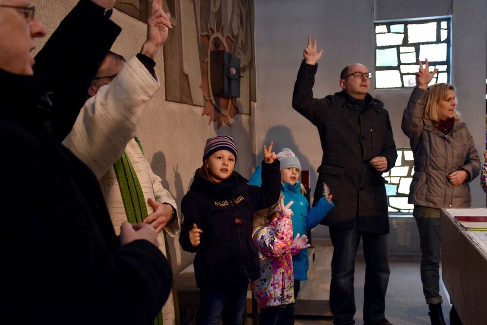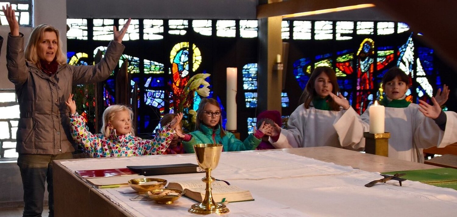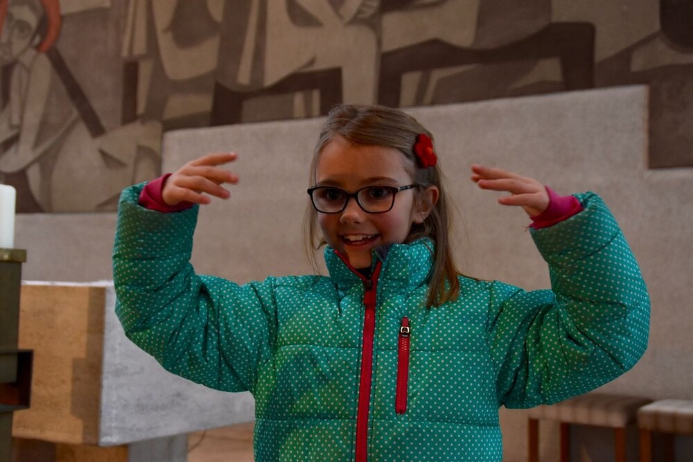 Sonntagvormittag, Familiengottesdienst in der Pfarre Rohrbach. Wie so oft laufen die Kinder beim Vater unser hoch zum Altar, stellen sich im Kreis auf und singen das Gebet - nicht nur mit Mund und Herz, sondern auch mit Händen. Dabei fällt auf, dass die Bewegungen anders sind als sonst, sie scheinen kraftvoller und sprechender. Bei „Wille“ klopft die Faust quasi auf den Tisch, bei „Brot“ werden Scheiben geschnitten, bei „Name“ fahren Zeigefinger und Daumen über die Stirn. Ja, hier kreieren die Hände Bilder und vertiefen damit die Worte. Oder erschließen sie neu.