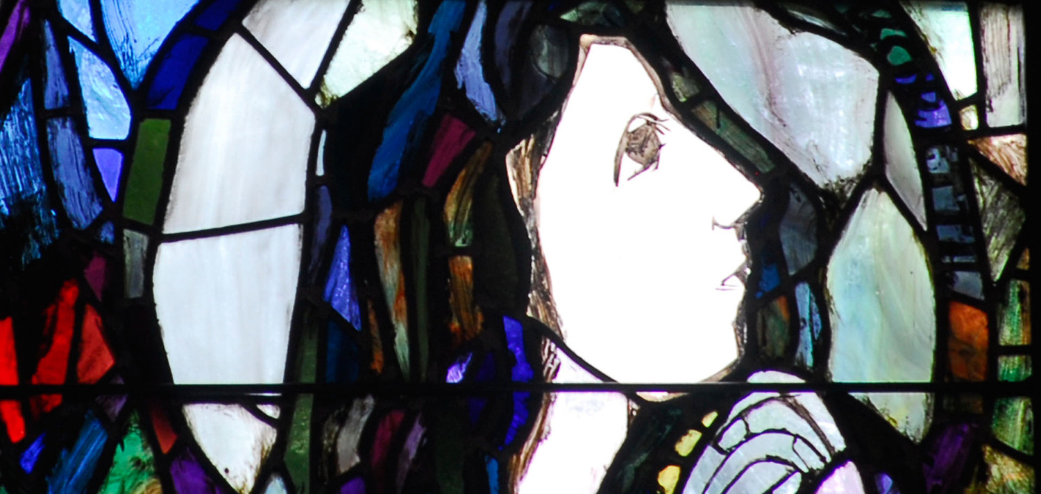| In der ursprünglichen Ausschreibung des Kunstwettbewerbs waren Fenster zu den acht Seligpreisungen (je vier männliche und weibliche Heilige plus die vier Evangelisten in den Ecken) gefordert. In den mir zugänglichen Dokumenten des Häusle Archivs ist jedoch kaum einmal die Rede von klaren Zuordnungen zu den jeweiligen Seligpreisungen. Auch wenn später immer wieder solche Zuordnungen gemacht wurden, scheinen sie während der Arbeit Häusles keine so große Rolle mehr gespielt zu haben. Das Fenster der Maria Goretti z.B. ist zum Schluss erst aus Anlass ihrer Seligsprechung anstelle der hl. Agnes hinzugekommen. Wenn bei den früheren Zuordnungen Nikolaus von der Flühe für "Selig die Friedfertigen" steht, so ist das sehr plausibel. Wenn aber der Doppeldoktor Fidelis von Sigmaringen für "Selig die Armen im Geiste" stehen soll, dann wird es schon auch fragwürdig. Selbstverständlich kann man immer alles weit interpretieren, aber die Frage ist, was es dann noch soll. Persönlich wäre ich mit der Zuordnung der Seligpreisungen lieber zurückhaltend; wichtiger ist eher, die Bilder und Figuren als solche wirken zu lassen. Die Tatsache, dass der hl. Ulrich, der Kirchenpatron in den Fenstern fehlt, könnte allerdings schon mit dem ursprünglichen Konzept zu tun haben. |