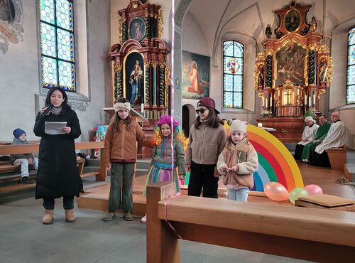 Bei der Familienmesse am Sonntag, dem 8. Februar, stand das Regenbogenschaf "Lamanda" im Mittelpunkt der Feier.