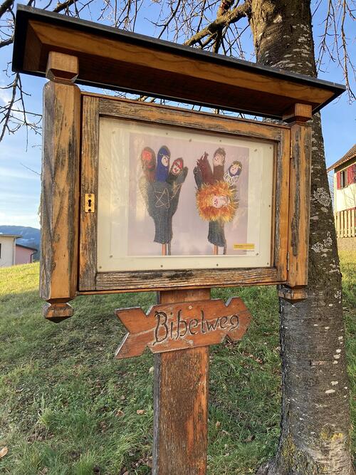 Die wechselnden Motive der sieben Bibelwegtafeln laden immer wieder zum Nachdenken oder auch Schmunzeln ein