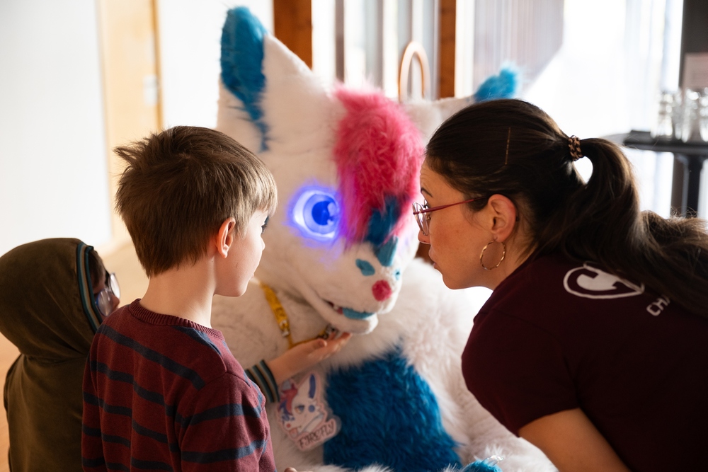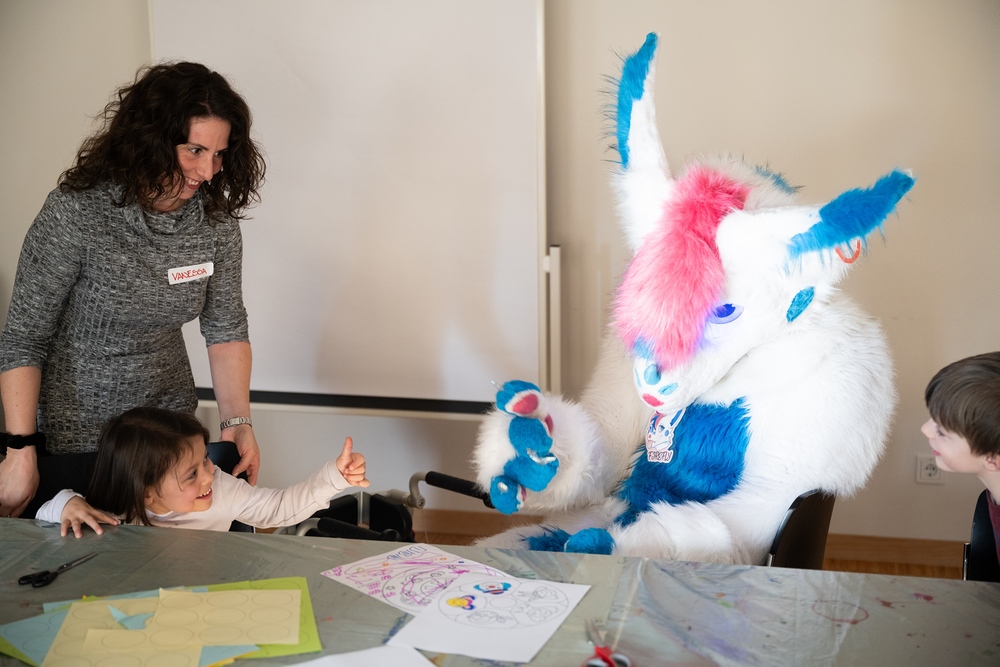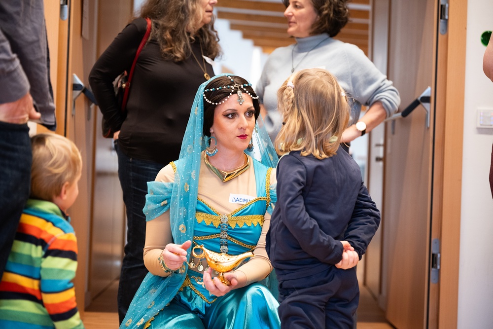Die schönste Erfolgsgeschichte aber, die erzählen die Kinder und ihre Familien selbst. Beim Familiennachmittag in St. Arbogast zum Beispiel. Da wird gebastelt, gerannt, gelacht. Da kommt das Erzähltheater „Himmelblau“ und da sind die Charity Heroes. Genauer gesagt, Batman, Firefly, Belle ohne Biest, Jasmine mit der Wunderlampe und Superheldin Black Widow ist auch vor Ort. Hier hat so jede und jeder seinen kleinen Helden-Moment. Hier sind Kinder einfach Kinder, Eltern einfach Eltern und jede Familie so anders, wie sie sein will.