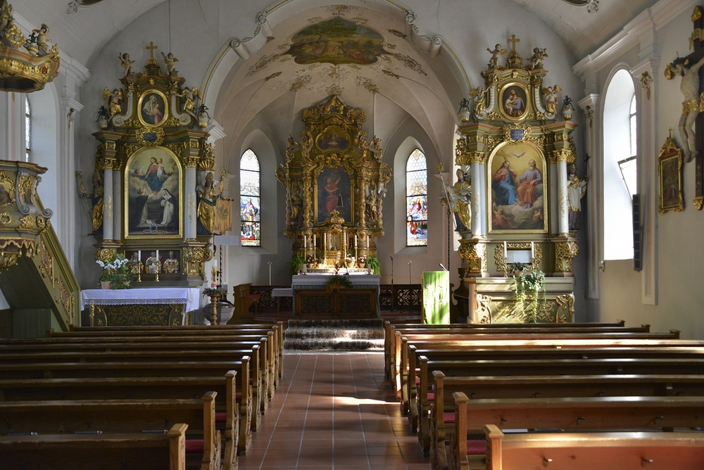 1350 Kapelle, 1386 Pfarre, 1507 Neubau, 1629 Verlängerung des Langhauses, 1792 Barockisierung, 1863 Restaurierung