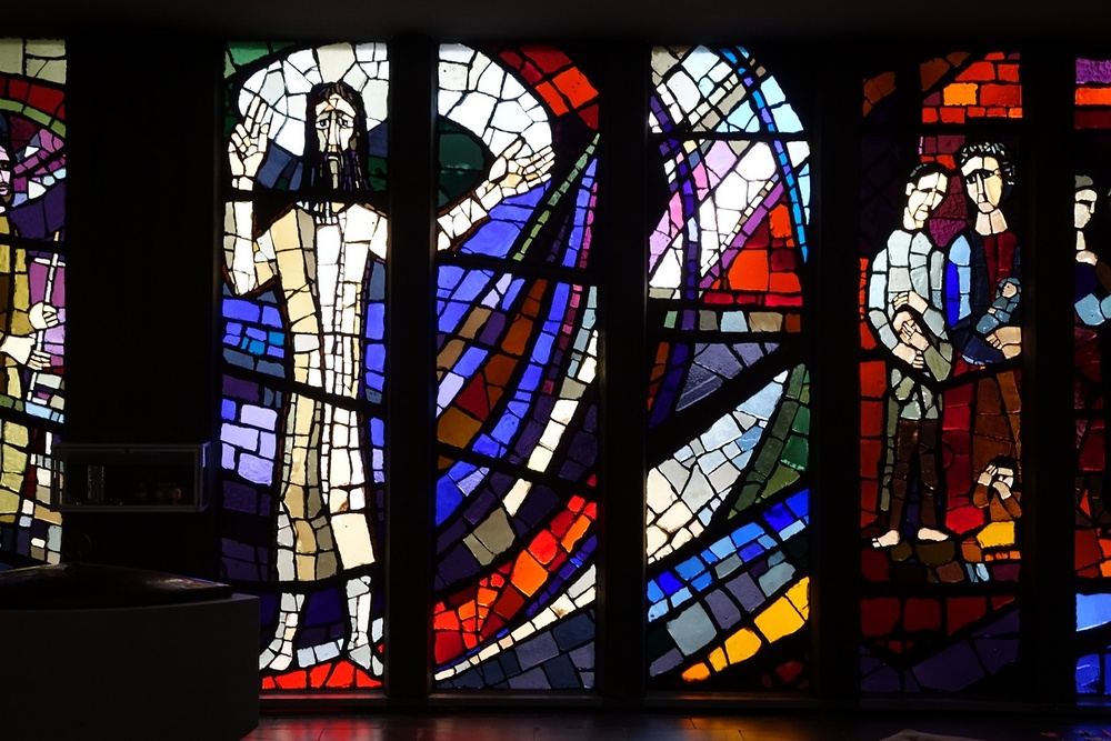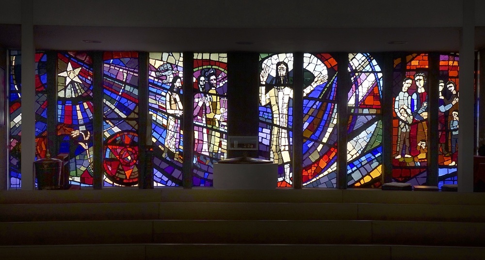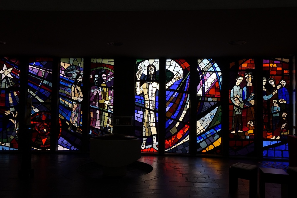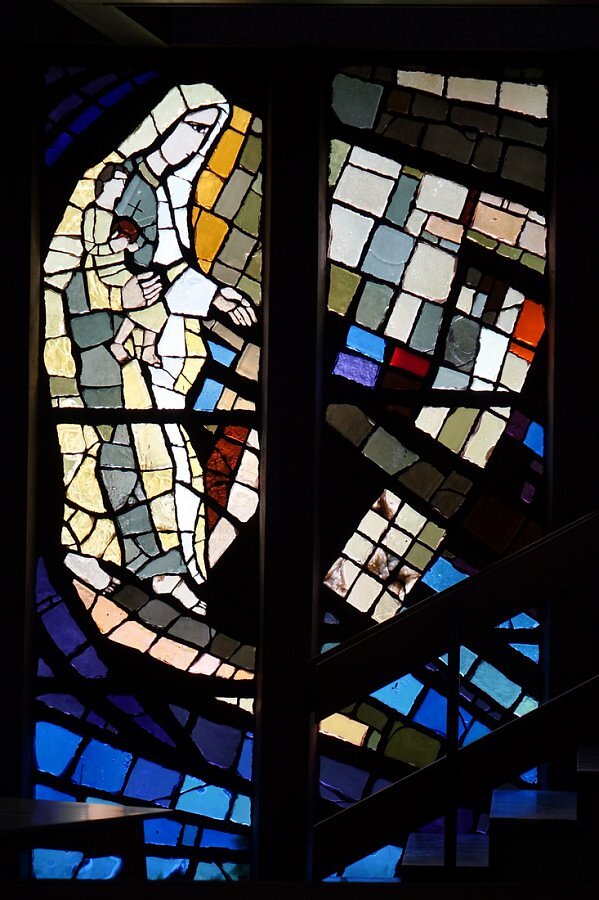 Dornbirn-Schoren, Bruder Klaus, Versuchung und Trost durch Maria, Betonglas 1963 Martin Häusle
