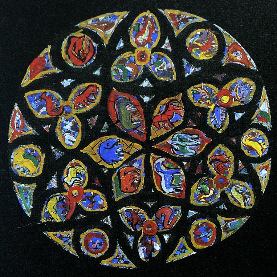 Entwurfskarton Rosette Engel, Schöpfung, Martin Häusle 1960