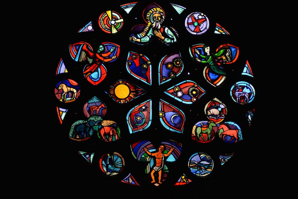 Feldkirch, Dompfarrkirche hl. Nikolaus, Rosette Schöpfung, Martin Häusle 1960