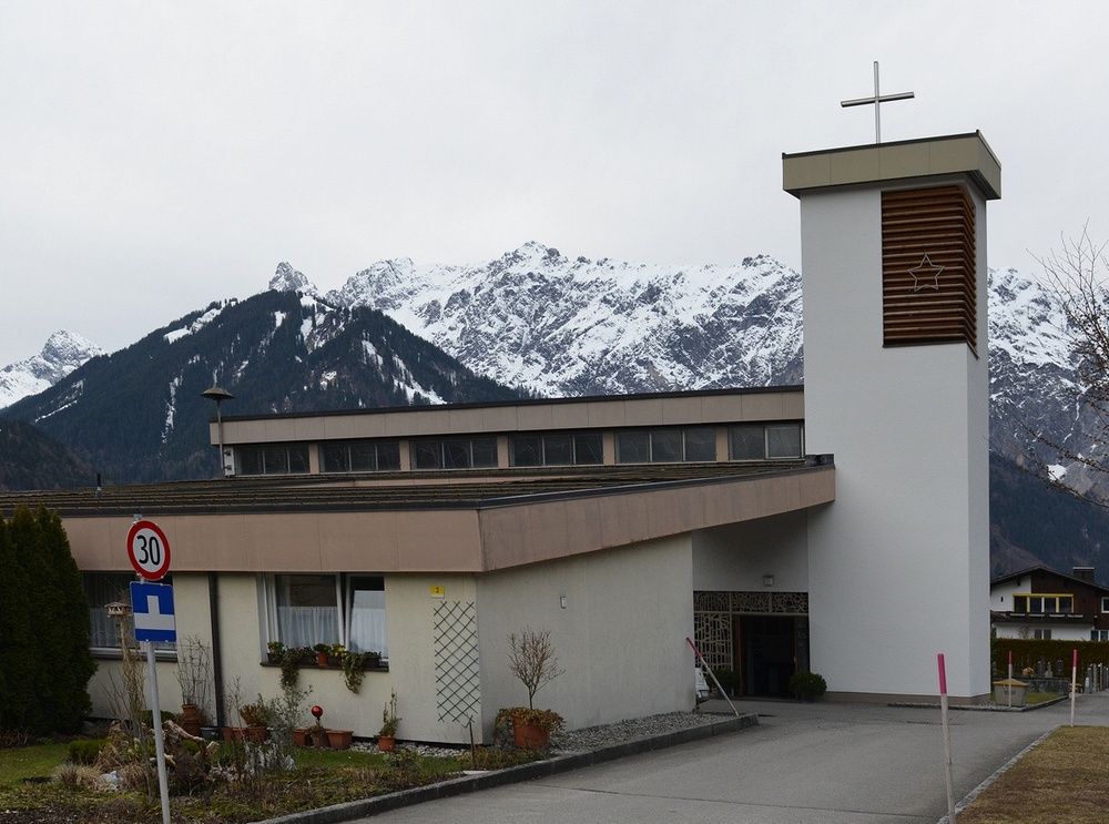 1958-64 nach Plan von Architekt Werner Pfeifer (1919–1972) aus Schruns erbaut. 1964 geweiht.