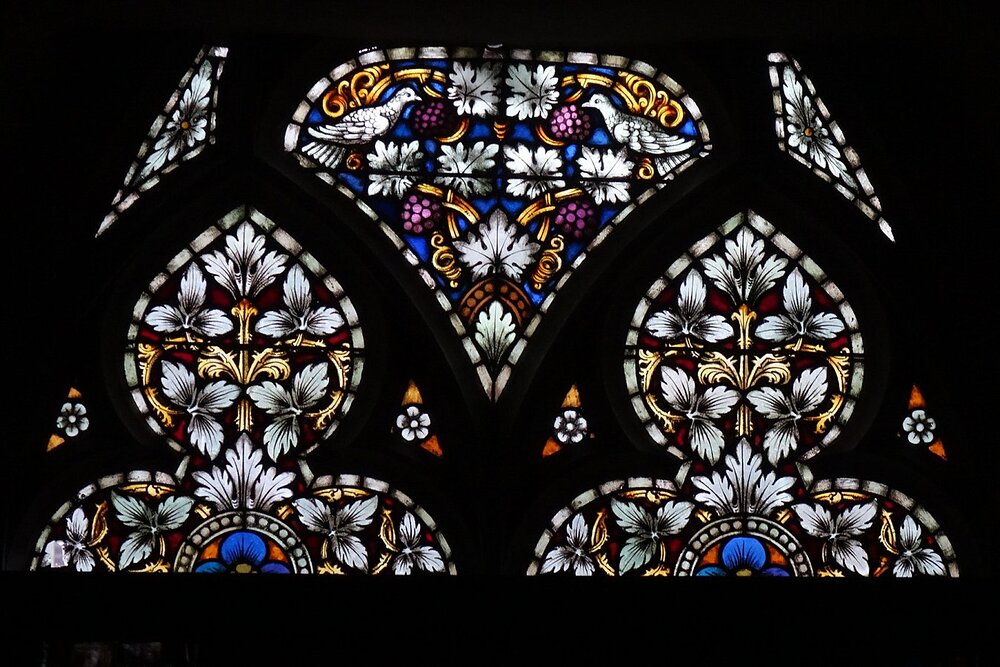 Kennelbach, St. Josef, Ornament über dem Eingang,1908 Tiroler Glasmalerei Innsbruck