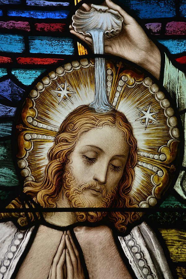 Kennelbach, St. Josef, Taufe Christi,1908 Tiroler Glasmalerei Innsbruck
