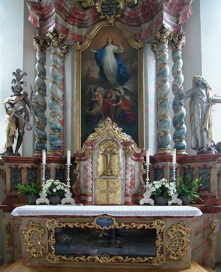 Mensa mit Reliquiengrab des hl. Prosper, aus der St. Sebastians-Katakombe 1763, 1844 nach Nüziders gebracht.