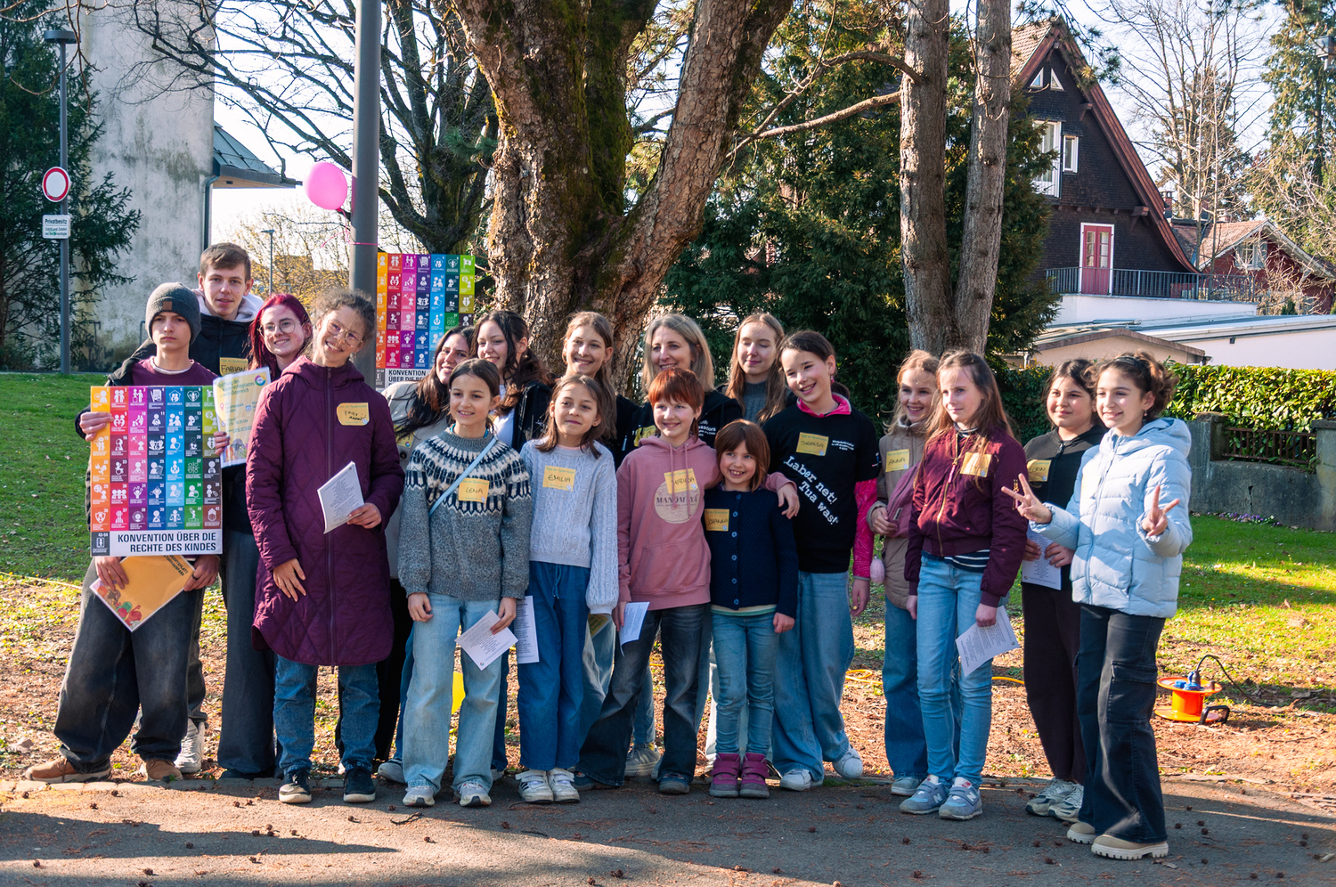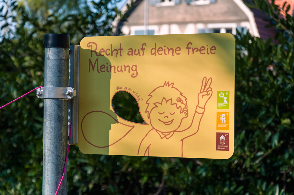 Dreizehn kreativ gestaltete, beidseitige Schilder machen nun zentrale Kinderrechte erlebbar – vom Recht auf Bildung bis zum Recht auf Freizeit, Schutz vor Gewalt oder das Recht auf eine gesunde Umwelt. Jedes Schild lädt zum Mitmachen ein: Quizfragen, Rätsel oder kleine Aufgaben regen zum Nachdenken an und verbinden Spielspaß mit Lernen.