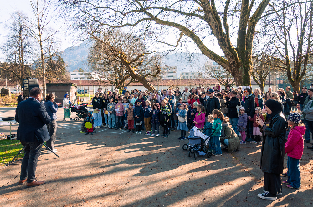 Zur Eröffnung durchschnitten Bürgermeister Markus Fäßler, Kinder- und Jugendanwalt Christian Netzer und die Jugendbotschafter:innen gemeinsam das rote Band. Mit dabei waren auch zahlreiche Gäste aus Politik, Kirche und Gesellschaft – doch die Hauptrolle spielten eindeutig die Kinder und Jugendlichen selbst.