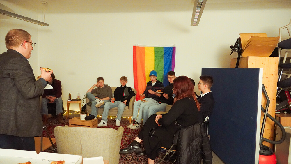 Die neuen Büroräumlichkeiten im Marktplatz 4 der Jungen Kirche und der Berufungspastoral sind ja noch eine Baustelle, trotzdem werden sie jetzt schon bespielt. Jeder und jede der*die kommt soll Teil der Geschichte des Marktplatz 4 sein und diese Geschichte ist schon mitten am Entstehen. Knapp 20 Jugendliche diskutierten mit Jugendseelsorger Fabian Jochum über die Bibel, Gott und was beides mit unserem Alltag zu tun hat. Bei Pizza, Limo und einem Bierchen wurden Fragen gestellt, beantwortet, Meinungen und Sichtweisen ausgetauscht und gemütlich beieinandergesessen. Dabei konnte man schon einen Einblick erhaschen, welchen Vibe die Räume in Zukunft haben werden: Wohnzimmeratmosphäre in der jede*r seinen Platz haben soll.