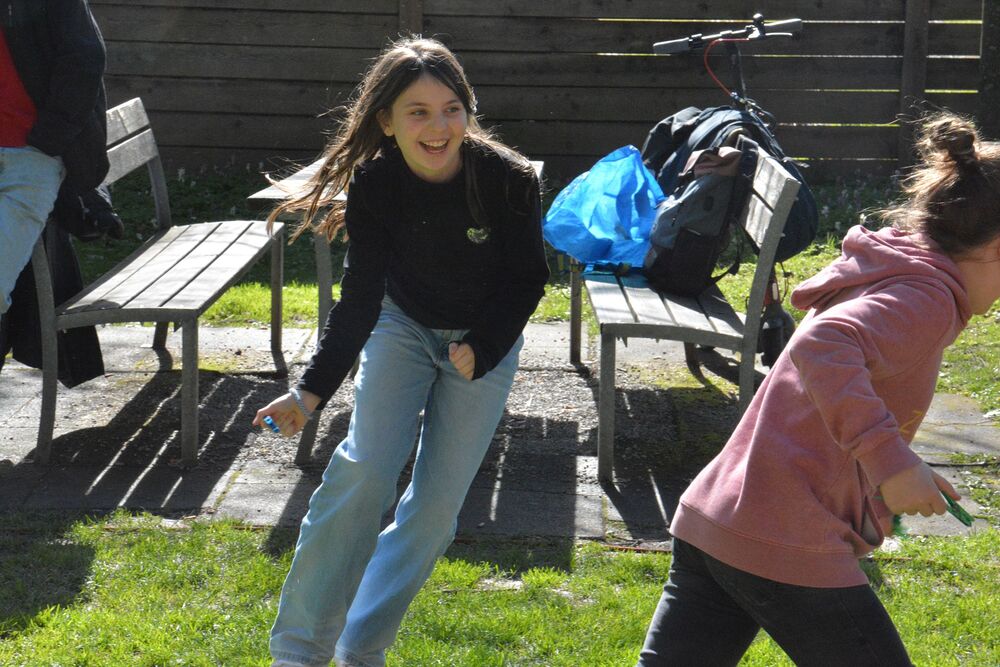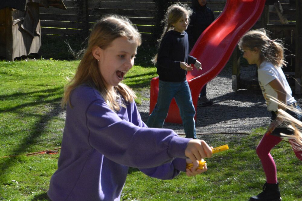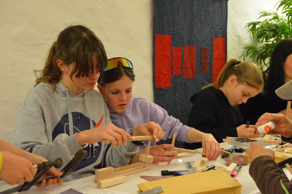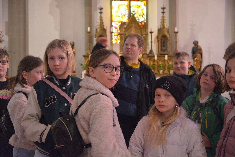 Zuerst ging es 40m in die Höhe. Im Katzenturm konnten die Kinder die Glocke bewundern und bekamen eine tolle Führung vom Glöckner vom Katzenturm höchstpersönlich. Bei der nächsten Station wurden Ratschen für Ostern gebaut, es gab Zeit für Spiele und auch dem Thema Kinderrechte war eine Station gewidmet. Es wurde gesungen und im Dom nach Ostereiern gesucht.