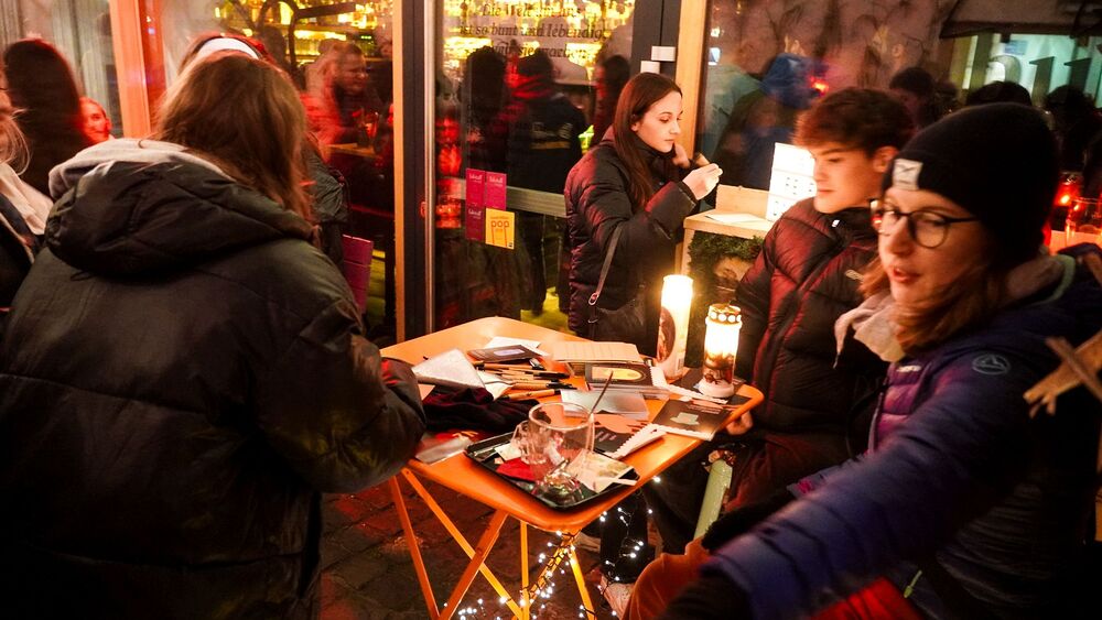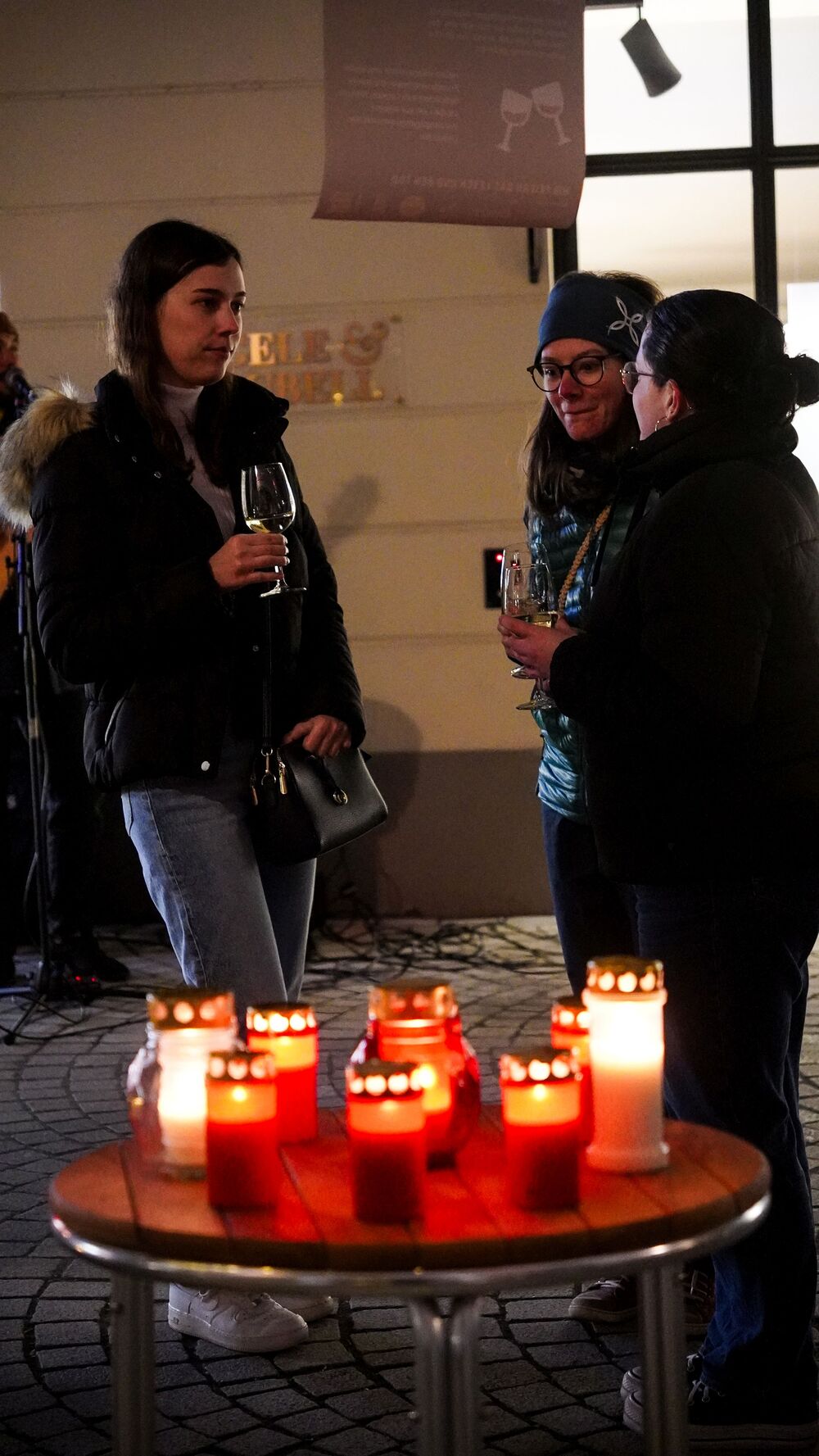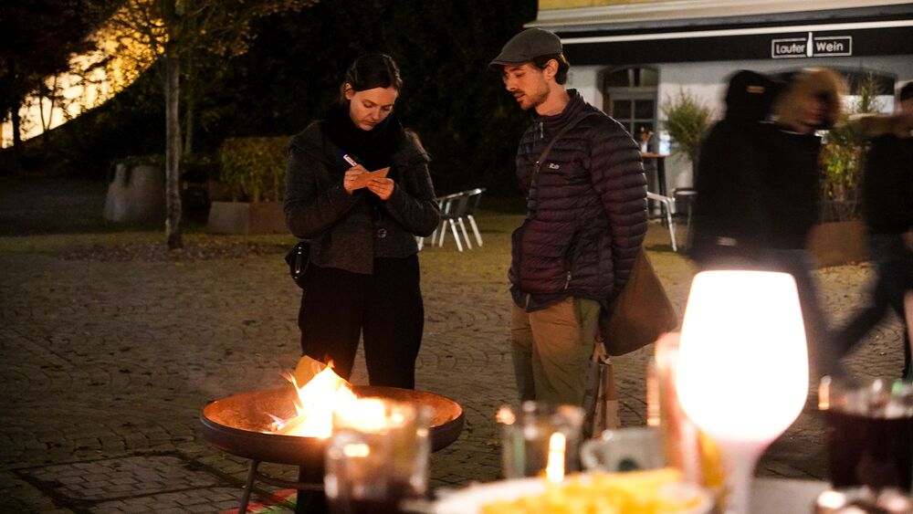 In entspannter Atmosphäre boten die Gastronomiebetriebe Bunt, Dogana, Café Feuerstein und Tür Eins mit einer Außenbar vor der Johanniterkirche die perfekte Location und sorgen für kühle bzw. warme Getränke. Mit je einer Laterne und vielen Kerzen wurden den Stationen die schöne Stimmung verliehen. Musiker Matias Collantes zog mit seiner Gitarre durch die Gassen und spielte ein Ständchen nach dem anderen. Mitarbeitende der Jungen Kirche brachten bei den Bars die existenziellen Fragen des Lebens und Sterbens auf den Tisch. „Unser Ziel ist es, jungen Menschen einen Raum zu bieten, in dem sie sich wohlfühlen und sich auf das Thema einlassen können“, erklärte Corinna Peter von der Jungen Kirche Vorarlberg. Über 100 Jugendliche und junge Erwachsene ließen sich darauf ein, schrieben ihre Sorgen auf und verbrannten sie, schrieben Postkarten mit guten Wünschen an sich selbst, zündeten Kerzen für liebe, verstorbene Menschen an und stießen auf das Leben an. Das alles bestens bewirtet von Dogana, Café Feuerstein, Tür Eins und Bunt.