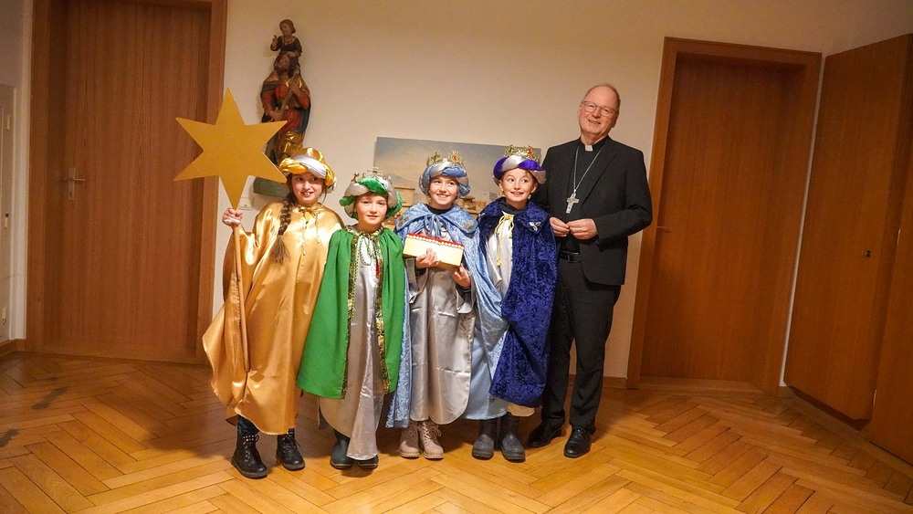 Wie jedes Jahr, galt der erste offizielle Besuch einer Sternsinger*innen Gruppe in Vorarlberg am 27. Dezember Bischof Benno Elbs. Bischof Benno freute sich über den Besuch der Sternsinger*innen aus der Pfarre St. Gallenkirch. Für die Gruppe war es ein besonderes Erlebnis, wie die Begleiterin Susanne Benedikt berichtete „Es war uns Innermontafoner Sternsinger eine große Ehre Bischof Benno als erstes den Segen für das neue Jahr zu bringen. Für mich als Begleitperson und Organisatorin der Sternsinger in St. Gallenkirch war es sehr berührend zu sehen, wie natürlich und herzlich Bischof Benno auf die vier nervösen Kinder zugegangen ist.“