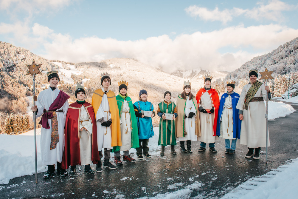 Sternsingen in Vorarlberg: 4.000 Kinder und Jugendliche sind in Vorarlberg und setzen sich mit Unterstützung von 1.500 Erwachsenen für ein würdiges Leben im globalen Süden ein – und davon lassen sie sich auch von Schnee, Wind und Wetter nicht abhalten. In Dafins sind gleich mehrere Gruppen durch den Schnee gestapft.
