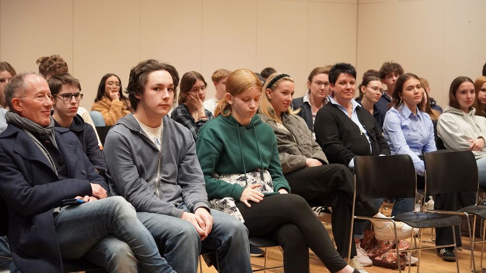 Der Einladung jede Frage anonym zu stellen, folgten die jungen Leute gerne und reichten sie digital ein. Neben Fragen zum Berufsalltag und Erfahrungen im Leben wurden auch die aktuellen Geschehnisse in der Welt diskutiert.