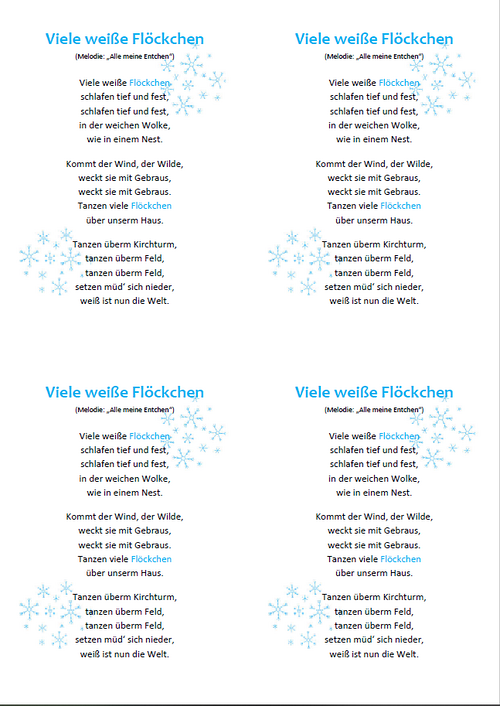 Lied - Viele weiße Flöckchen A6