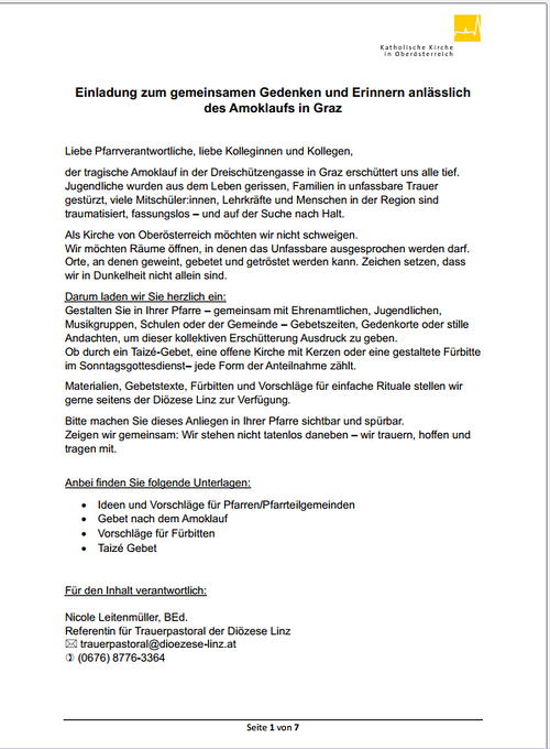 Amoklauf in Graz - Gedenkelemente für Pfarrgemeinden