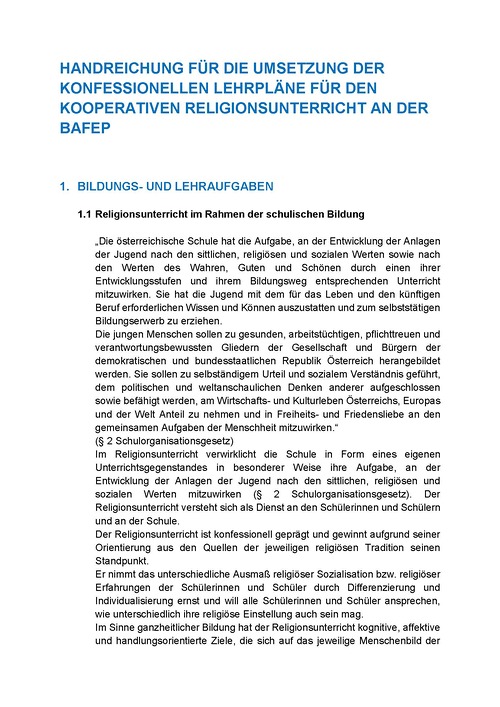 Handreichung kooperativer Religionsunterricht an der BAFEP
