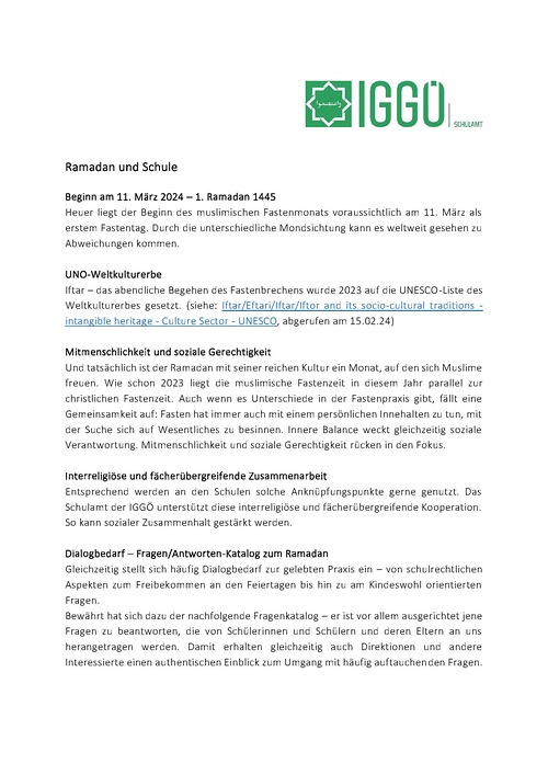 Infomaterial zu Ramandan und Schule